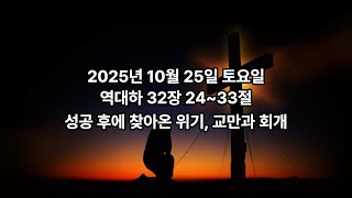 [역대하] 2025. 10. 25 토요일 대하 32:24-33 성공 후에 찾아온 위기, 교만과 회개